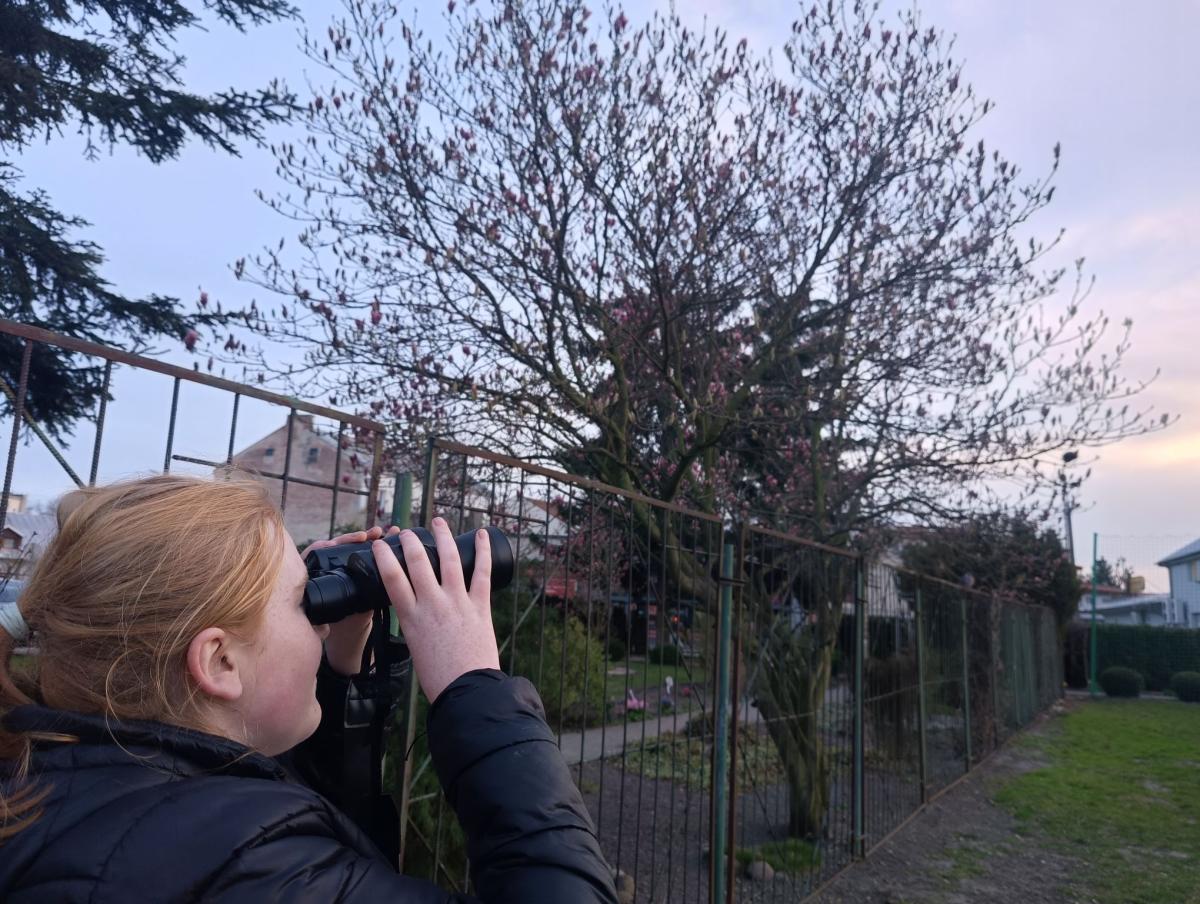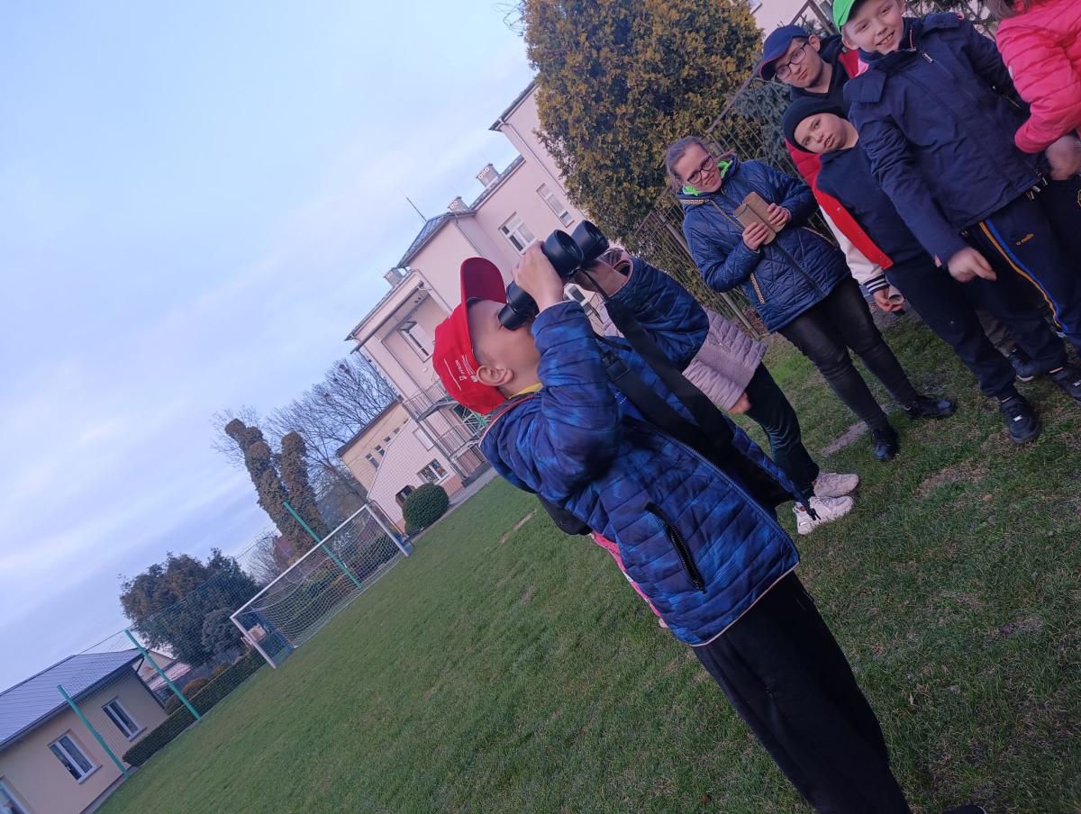 Później przyszła pora na prawdziwy sprzęt. Z profesjonalną lornetką w dłoniach, uczniowie z pasją odkrywców wypatrywali: