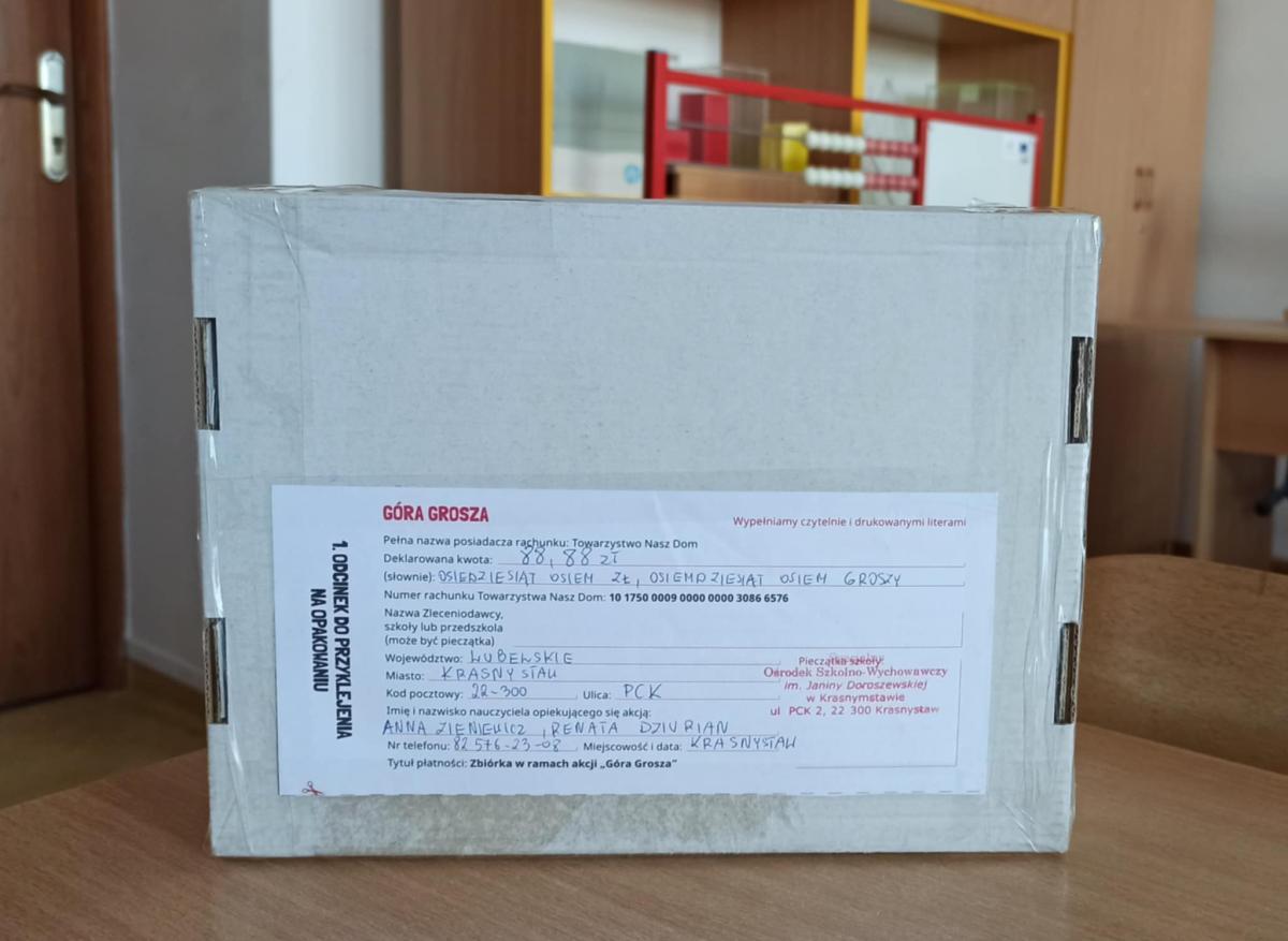 Pieniądze, za pośrednictwem Poczty Polskiej, zostały przekazane TOWARZYSTWU NASZ DOM.