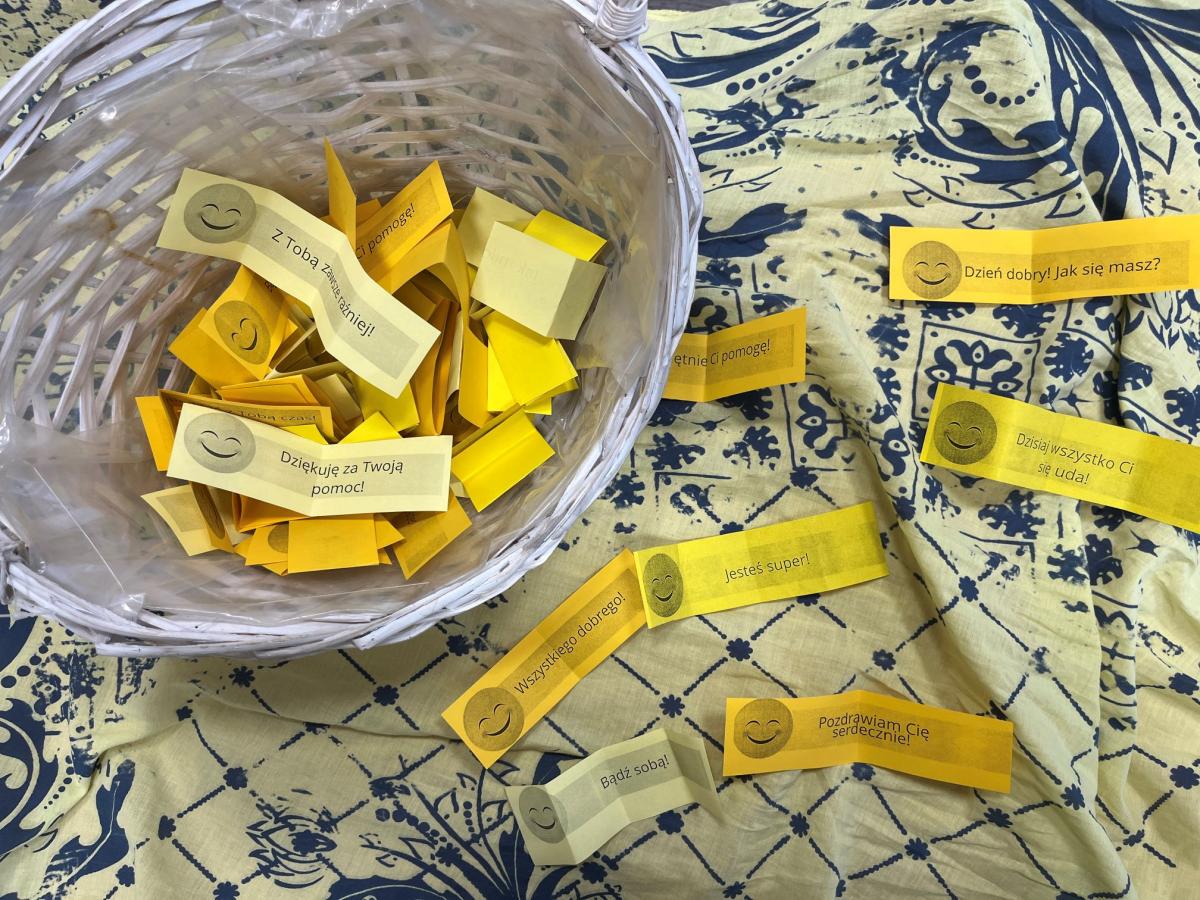 Z inicjatywy Samorządu Grup Wychowawczych radośnie świętowaliśmy Dzień Życzliwości. Kolorem przewodnim był żółty, który kojarząc się ze słońcem, ciepłem i światłem, symbolizuje radość, szczęście, optymizm, kreatywność i energię. Zgodnie z zasadą DOBRO POWRACA, postanowiliśmy pomóc potrzebującym zwierzętom. Każdy, kto podczas kiermaszu zakupił deserek lub pyszne ciasteczko, dołożył swoją cegiełkę do inicjatywy zakupu karmy. Dzieliliśmy się także dobrym słowem, które ma moc. Pamiętajcie o tym każdego dnia nie tylko od święta.